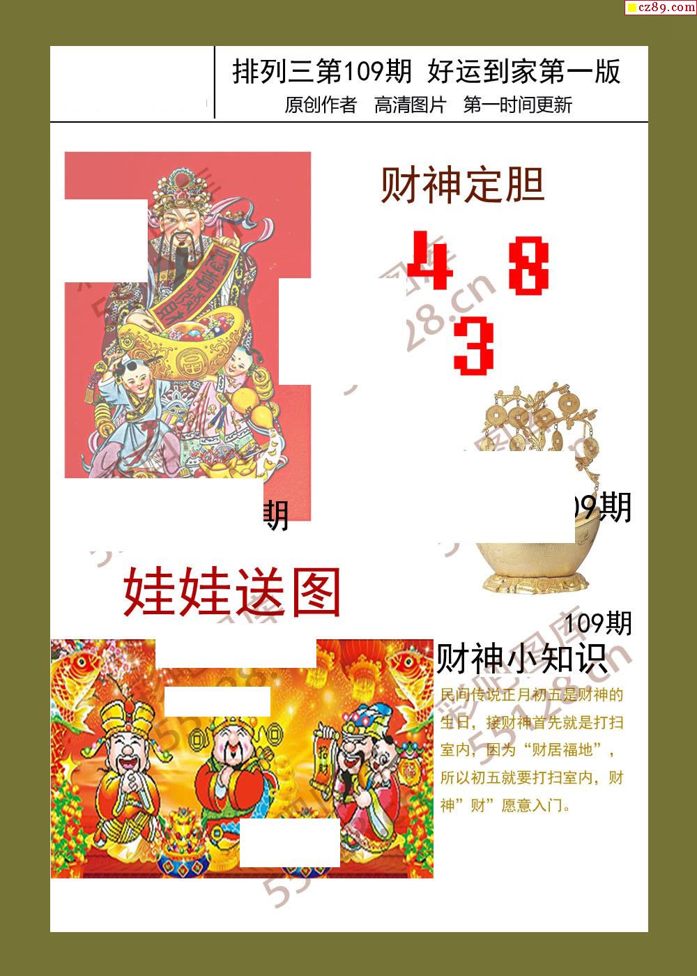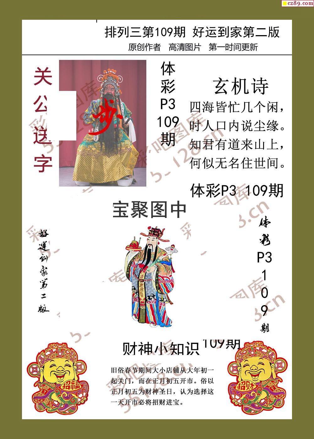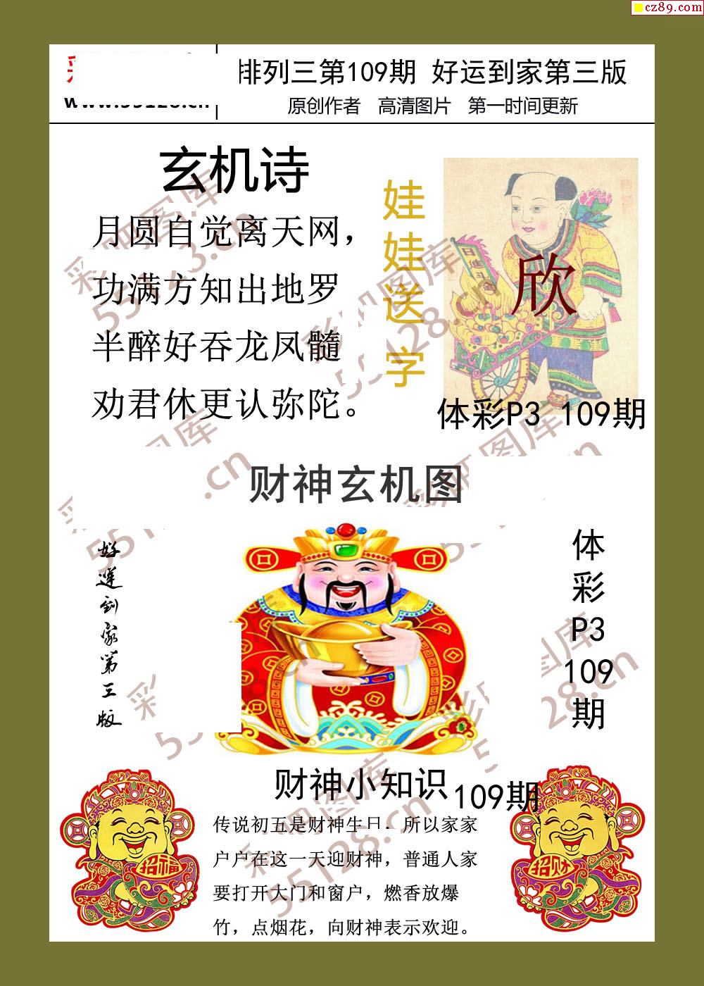 2026年109期牛彩网体彩P3画迷图谜汇总分享