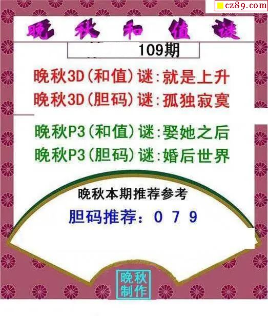 晚秋和值谜2026109期3d图谜
