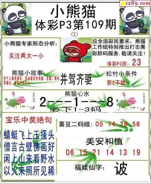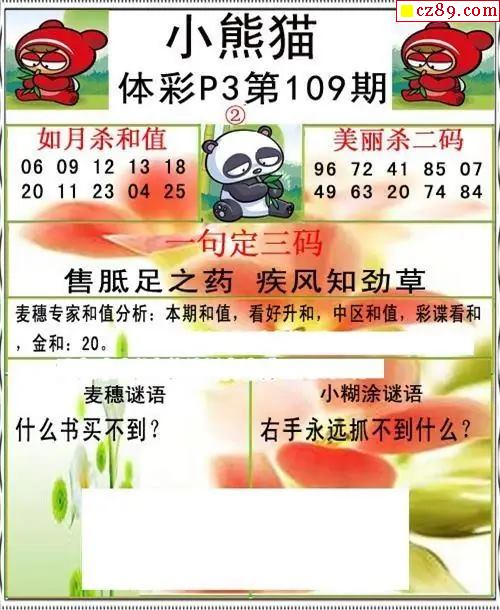 2026年109期牛彩网体彩P3画迷图谜汇总分享