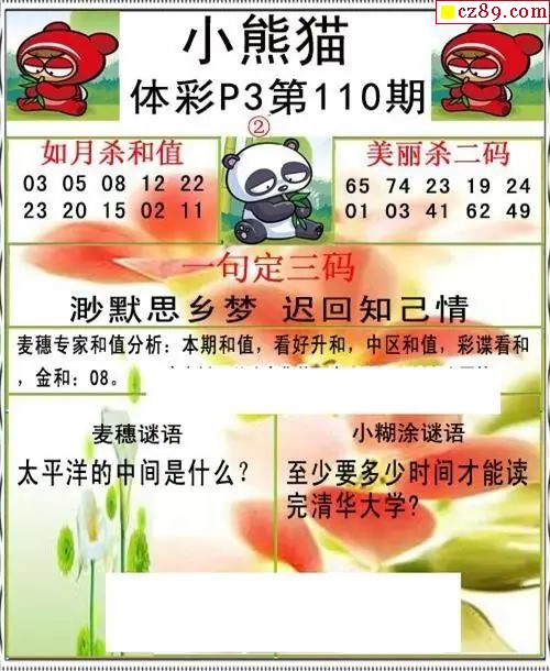 小熊猫2026110期体彩P3图谜