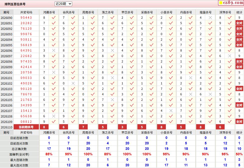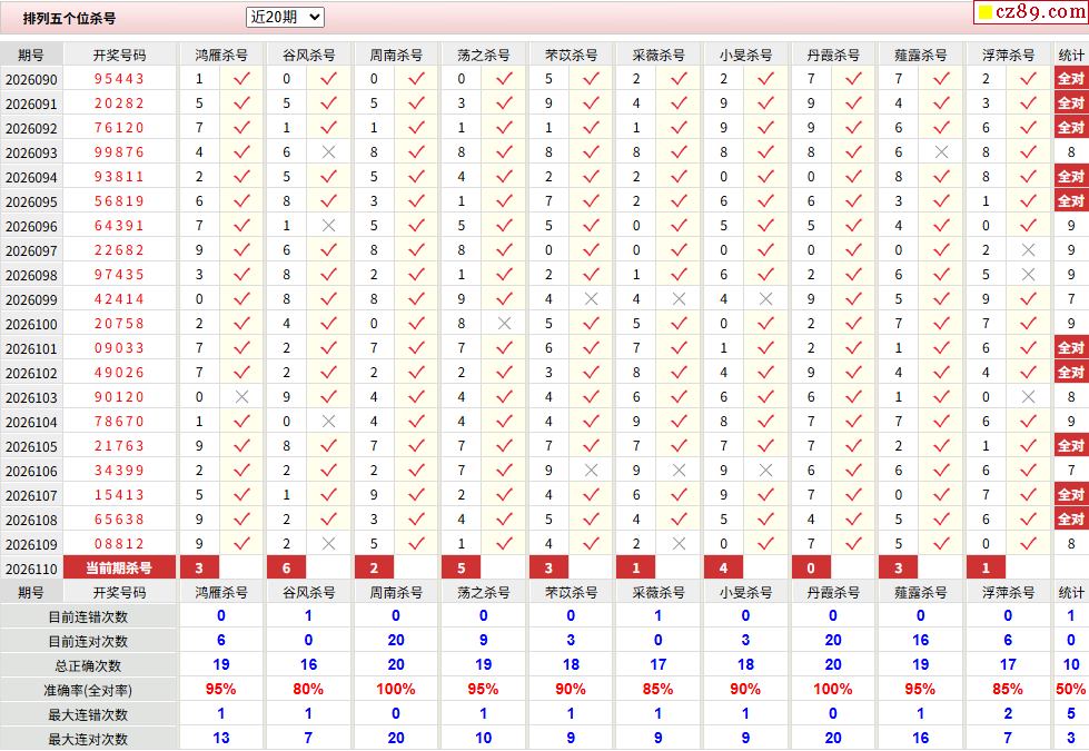 26年110期彩宝贝专家体彩P3杀号定码图表