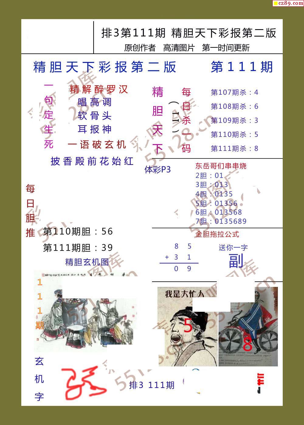 精胆天下彩报111期体彩p3图谜