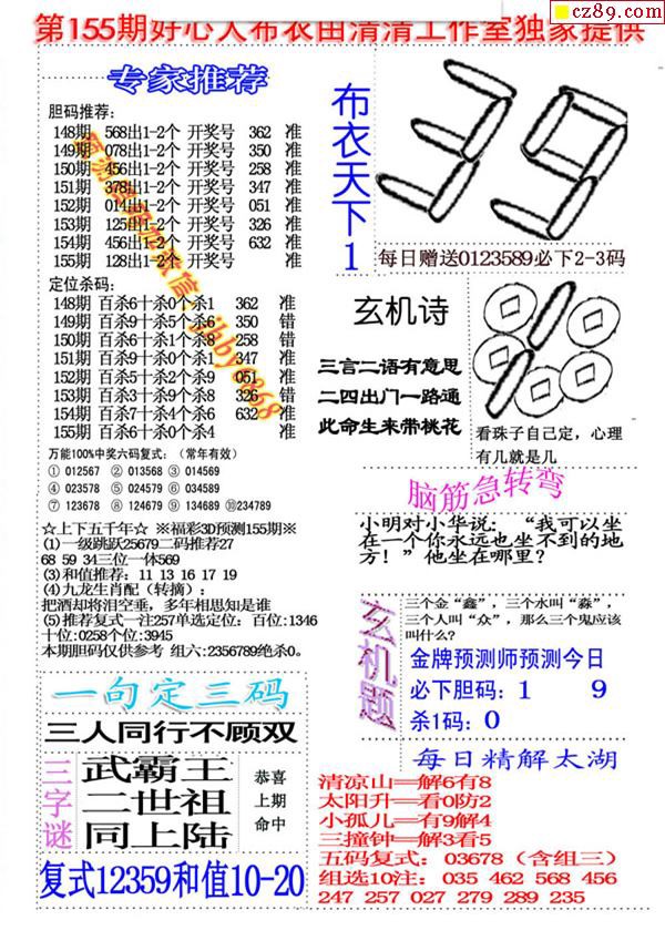 2026047期解太湖3d字图迷汇总报