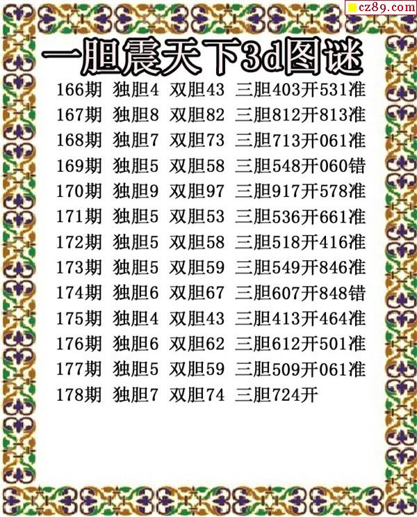2019178期3D图谜汇总(九)