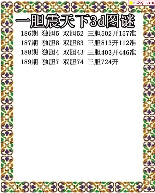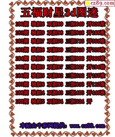 2019189期3D图谜汇总(九)