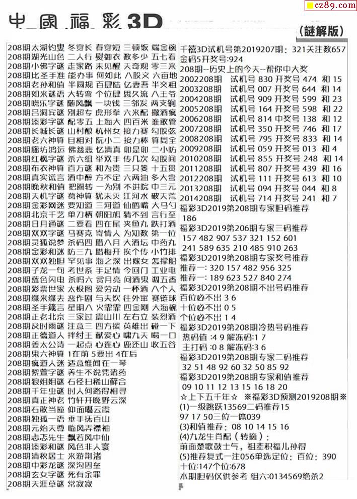 杀手+鑫马快报+字迷汇总19年208期3d图谜