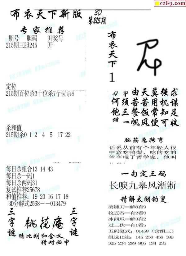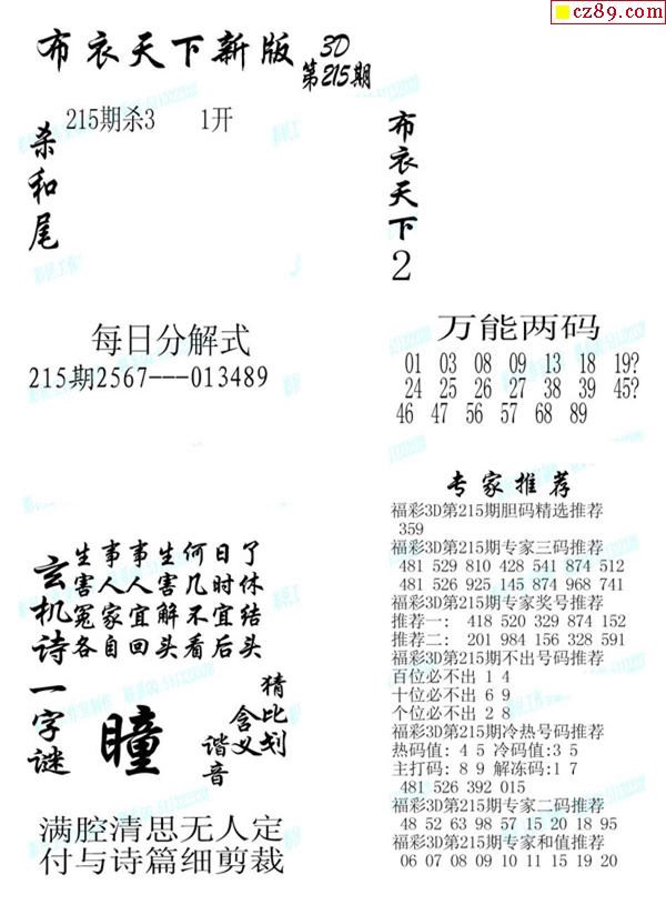 2019215期3d图谜汇总(五)