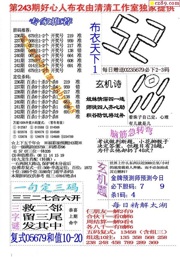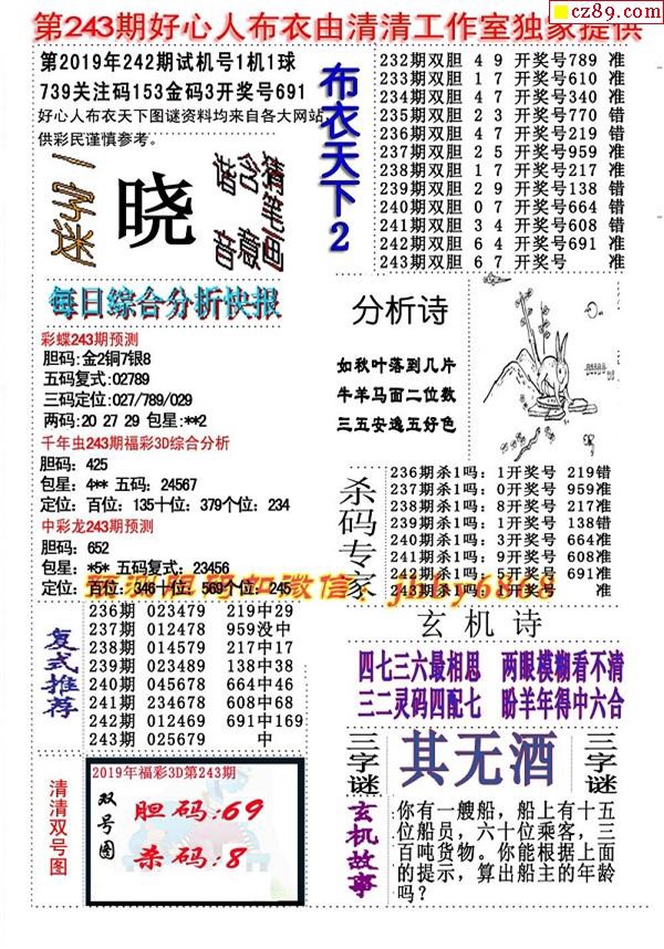 2019243期3D图谜汇总(八)