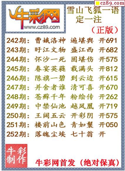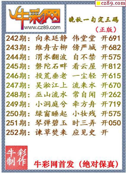 牛彩版3D字谜彩报图26年050期打印版