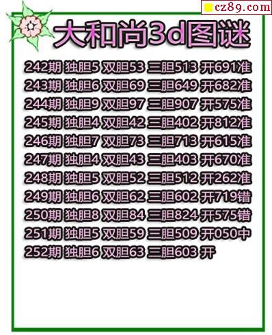 2019252期3D图谜汇总(九)