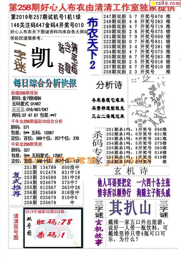 2019258期3D图谜汇总(八)
