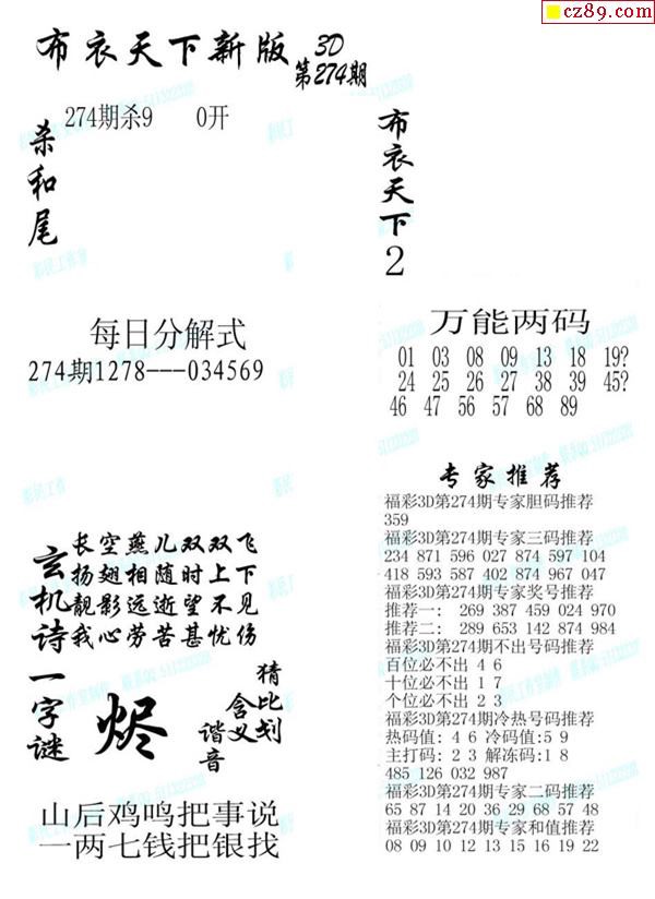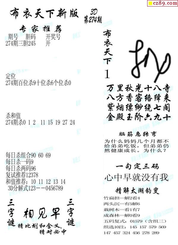 2019274期3d图谜汇总(五)