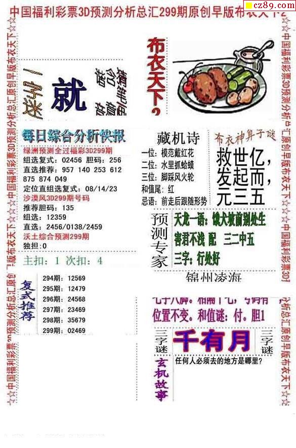 2019299期3d图谜汇总(五)