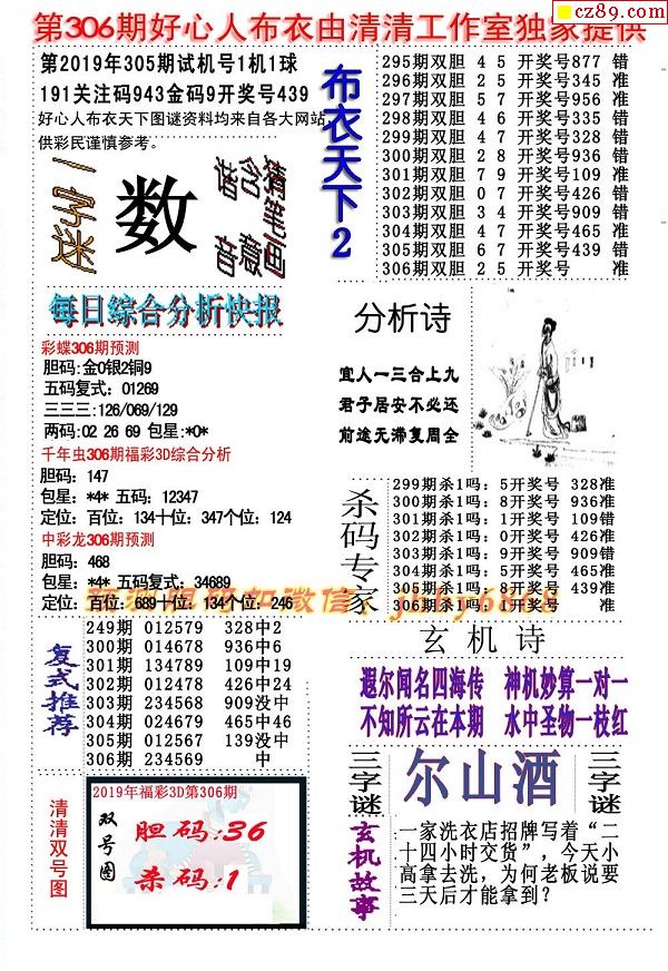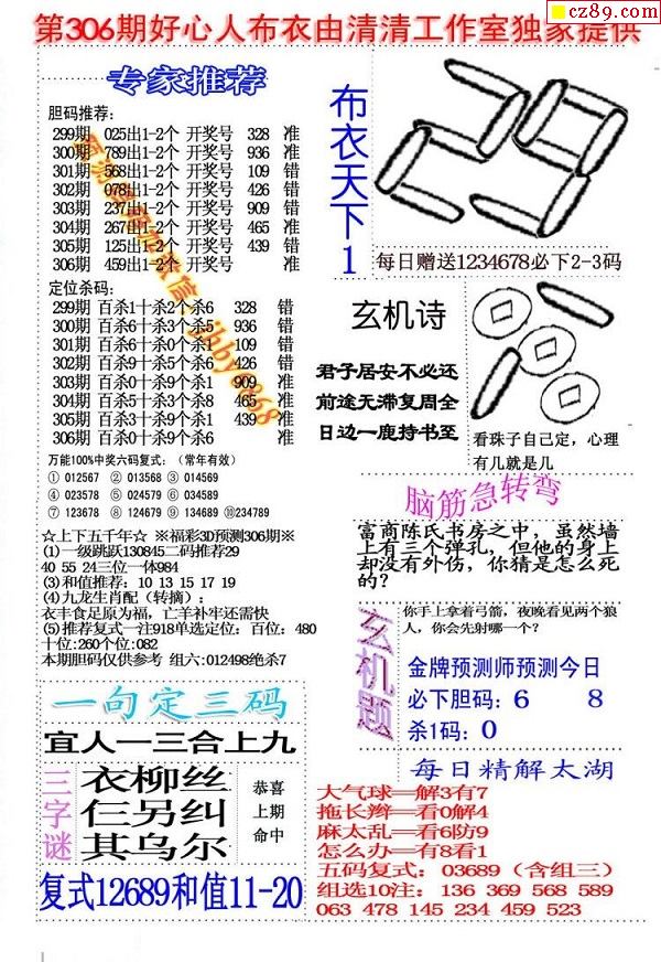 2019306期3D图谜汇总(八)
