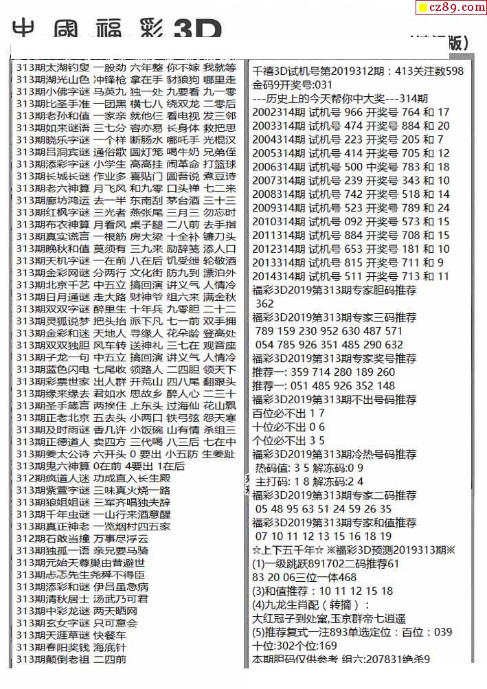 杀手+鑫马快报+字迷汇总19年313期3d图谜