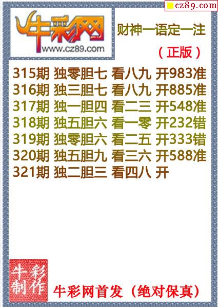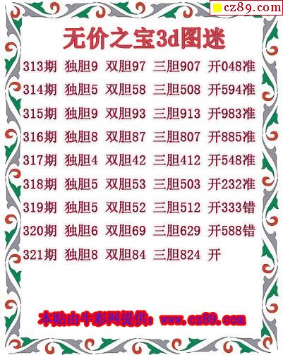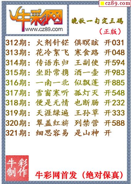 牛彩版3D预测彩报图26年057期打印版