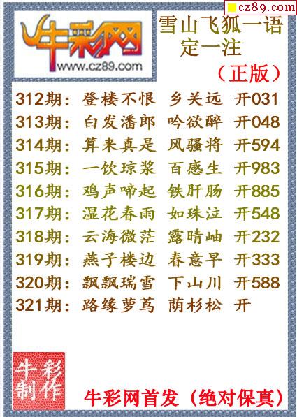 牛彩版3D字谜彩报图26年057期打印版
