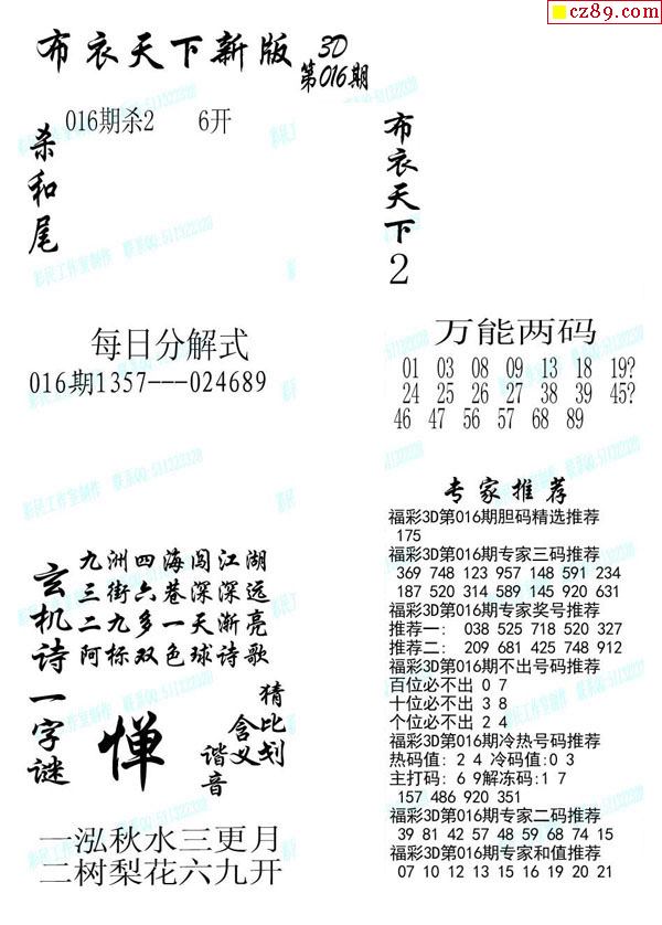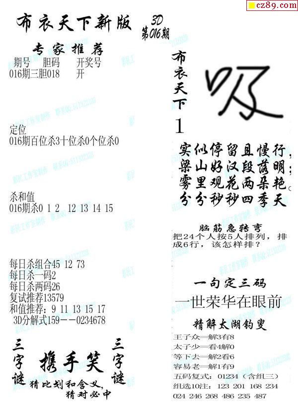 2020016期3d图谜汇总(五)