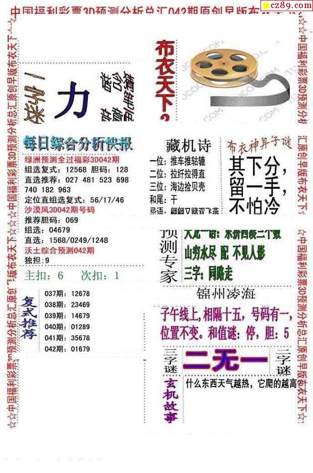 2026069期3D图谜汇总(七)