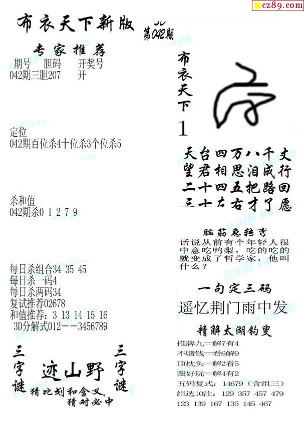 2026069期3D图谜汇总(二)