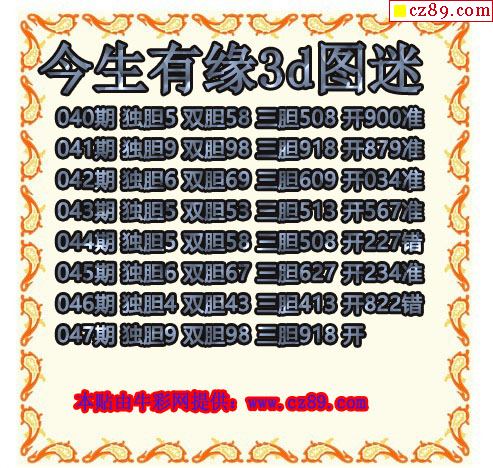 2026069期3D图谜汇总(一)