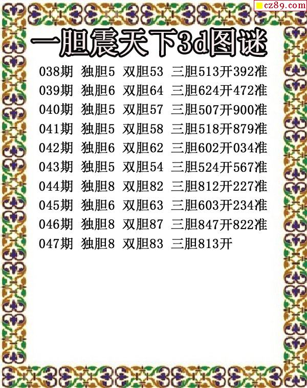 2026069期3D图谜汇总(二)