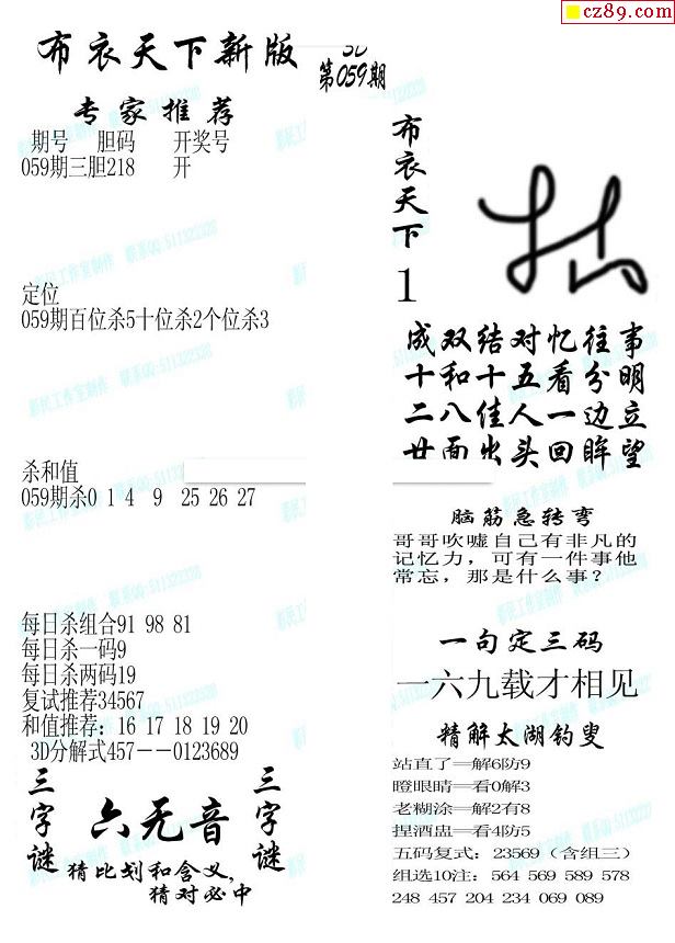 2026070期真精华布衣123456