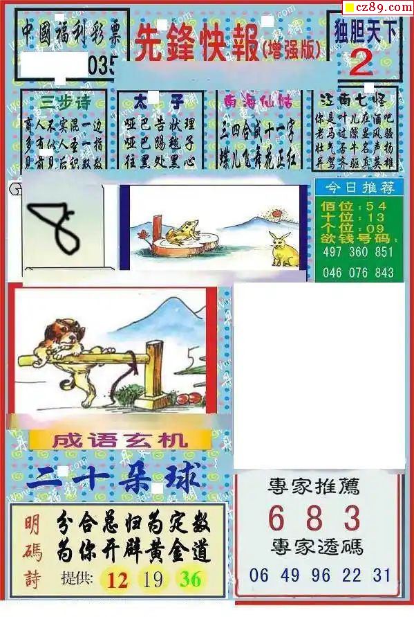 牛彩版3D字谜彩报图25年344期打印版