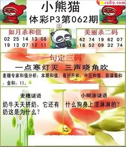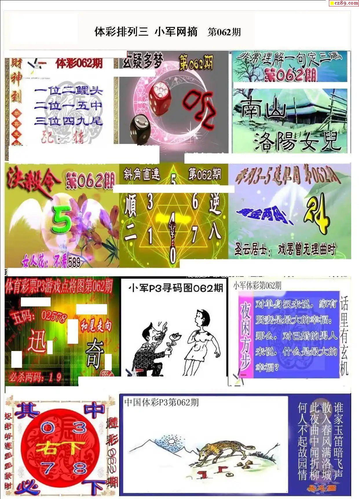 2025年062期牛彩网体彩P3画迷图谜汇总分享
