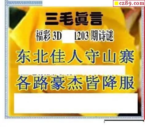 真三毛2025203期3d图谜