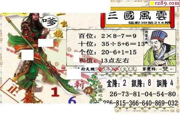 福彩3D2025342期 万家图谜三国胆拖杀图