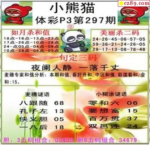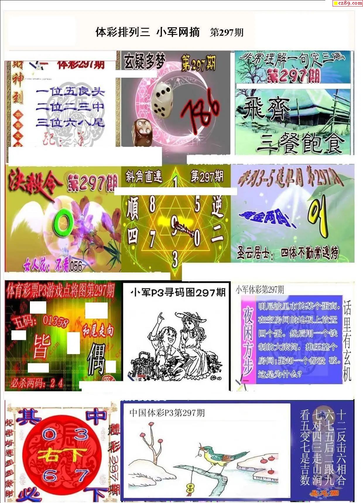 2025年297期牛彩网体彩P3画迷图谜汇总分享