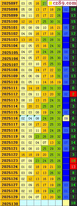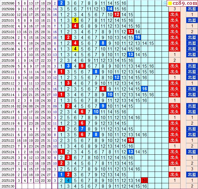 双色球2025130期阳光杀蓝汇总图表