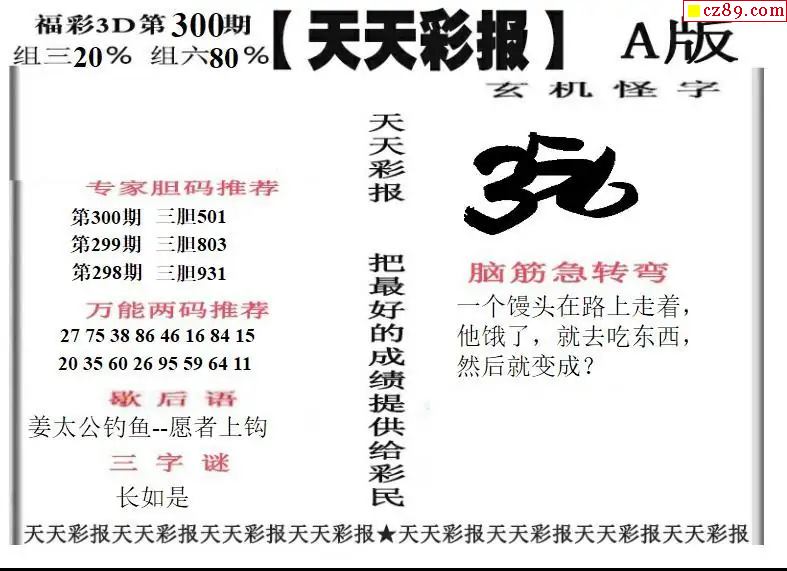 牛彩版3D字谜彩报图25年327期打印版