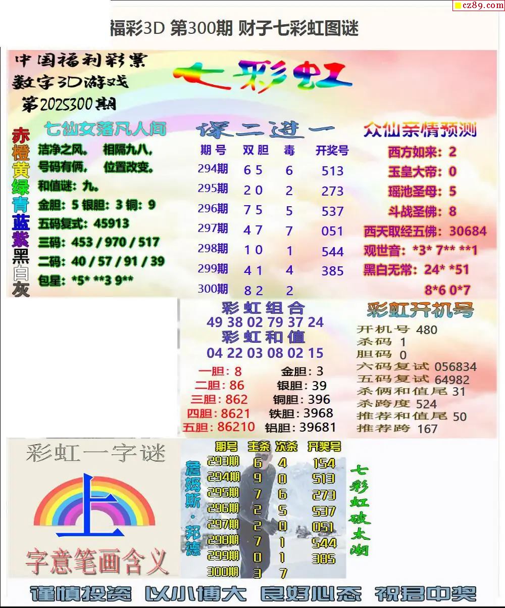 福彩3D2025300期图谜汇总