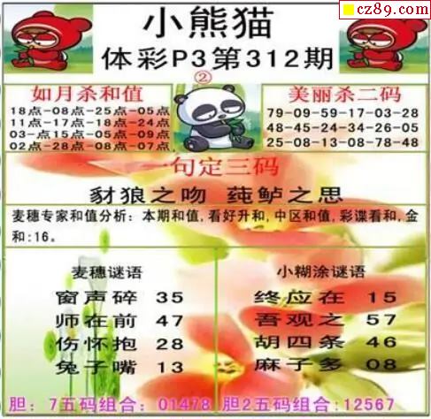 2025年312期牛彩网体彩P3画迷图谜汇总分享