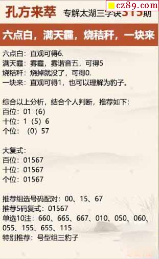 三丈火福彩3D25年325期猜数太湖字谜 学三年