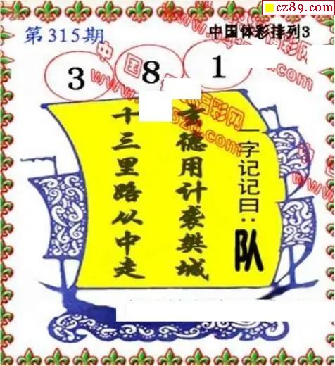 2025年315期牛彩网体彩P3画迷图谜汇总分享