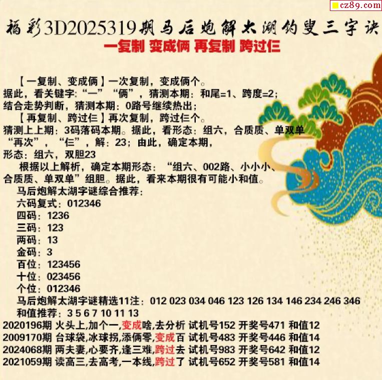 马后炮解25年319期3d太湖钓叟之 跨过仨