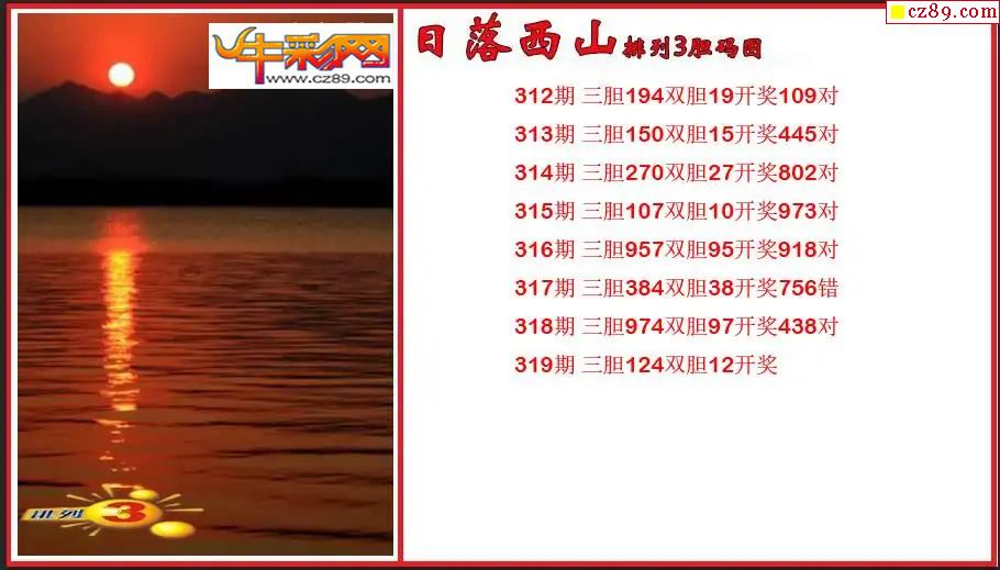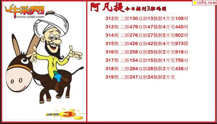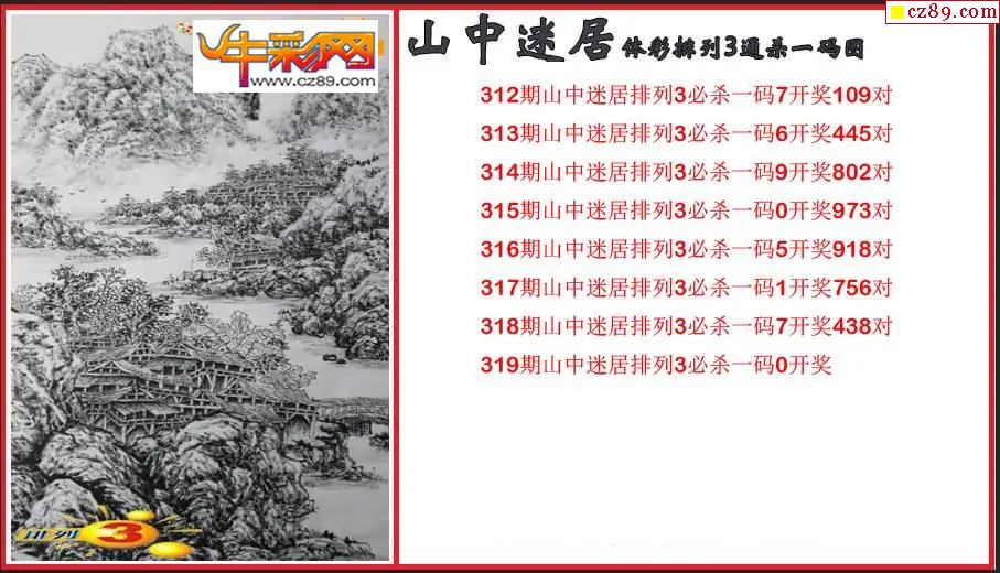 2025年325期牛彩网体彩P3画迷图谜汇总分享