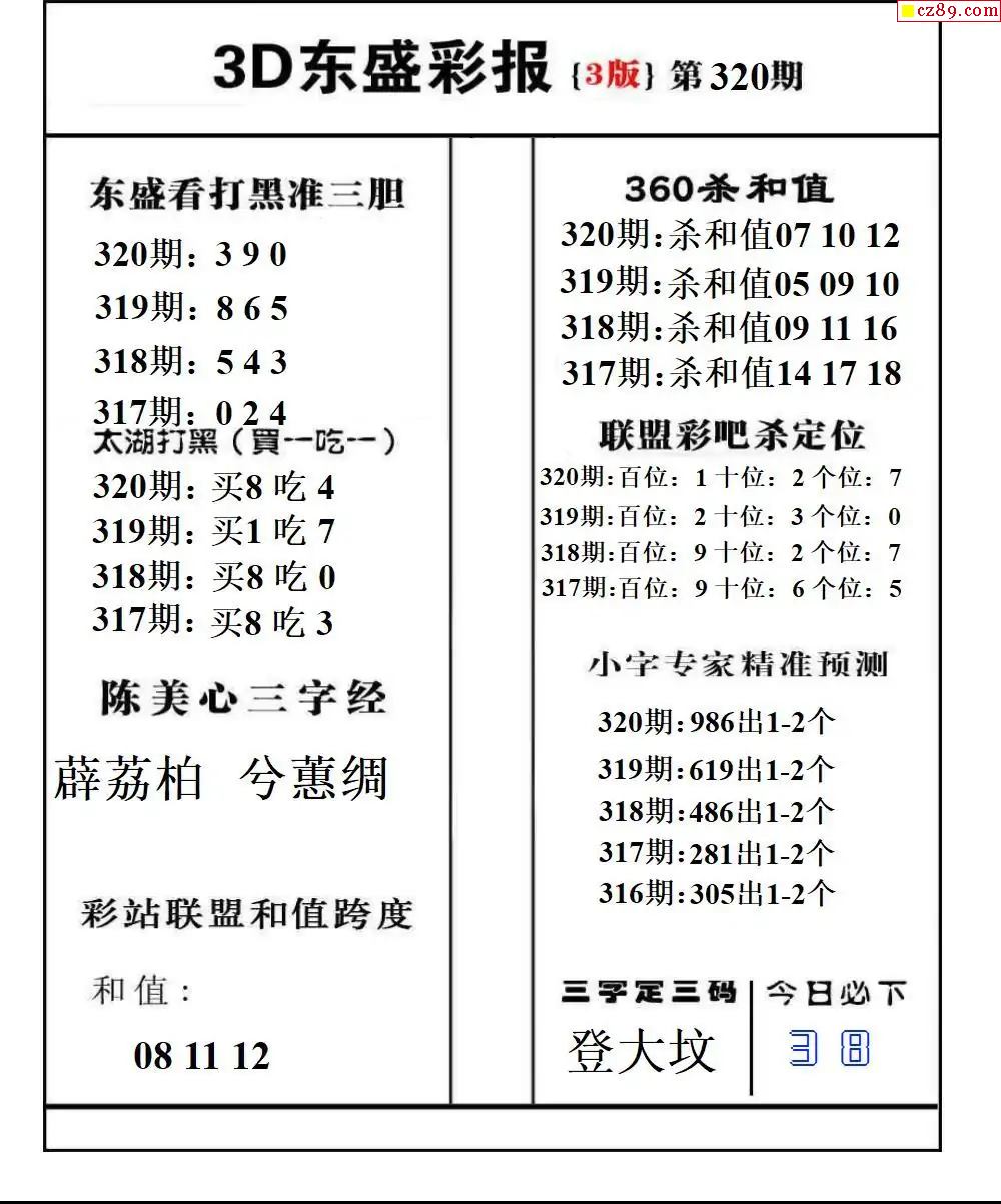 福彩3D2025320期东盛彩报+精品三毛会员版