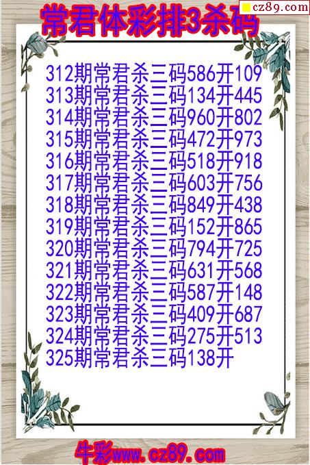 2025年325期体彩P3胆码杀码原创图总汇