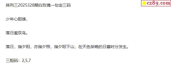 白玫瑰排三一句定三码25年328期
