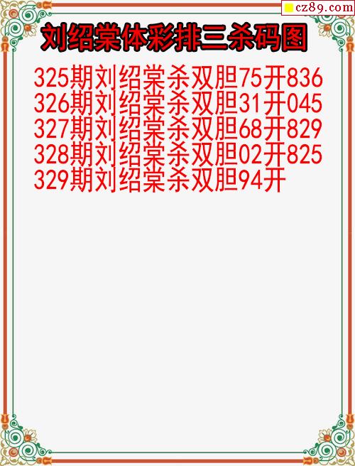 25年329期墨龙体彩排列3杀码图