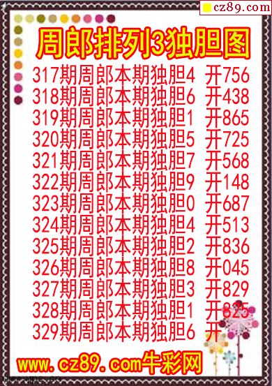 2025年329期牛彩网体彩P3画迷图谜汇总分享