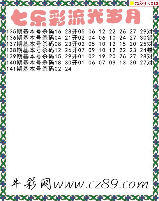七乐彩141期 彩宝贝专家杀号码预测图表