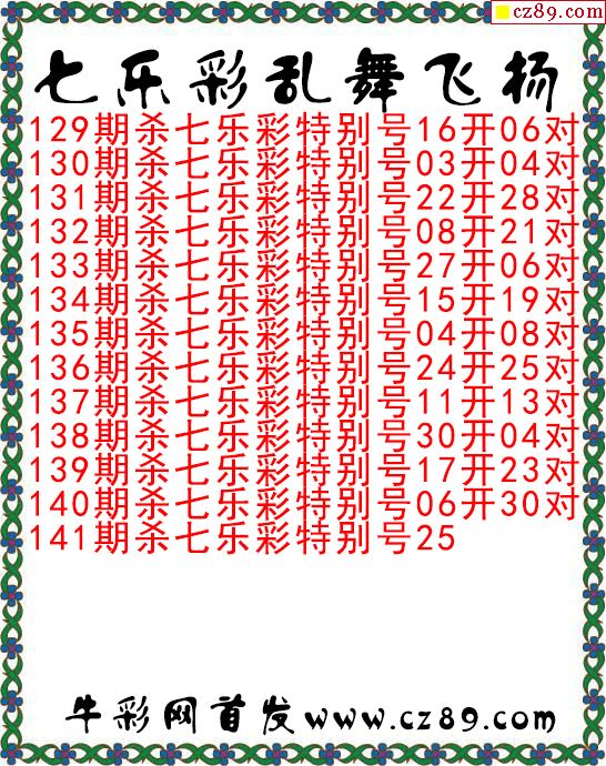 七乐彩2025141期乱舞飞扬今日图谜