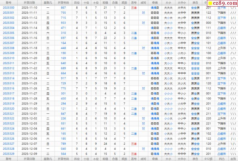 25年330期福彩3D综合统计表