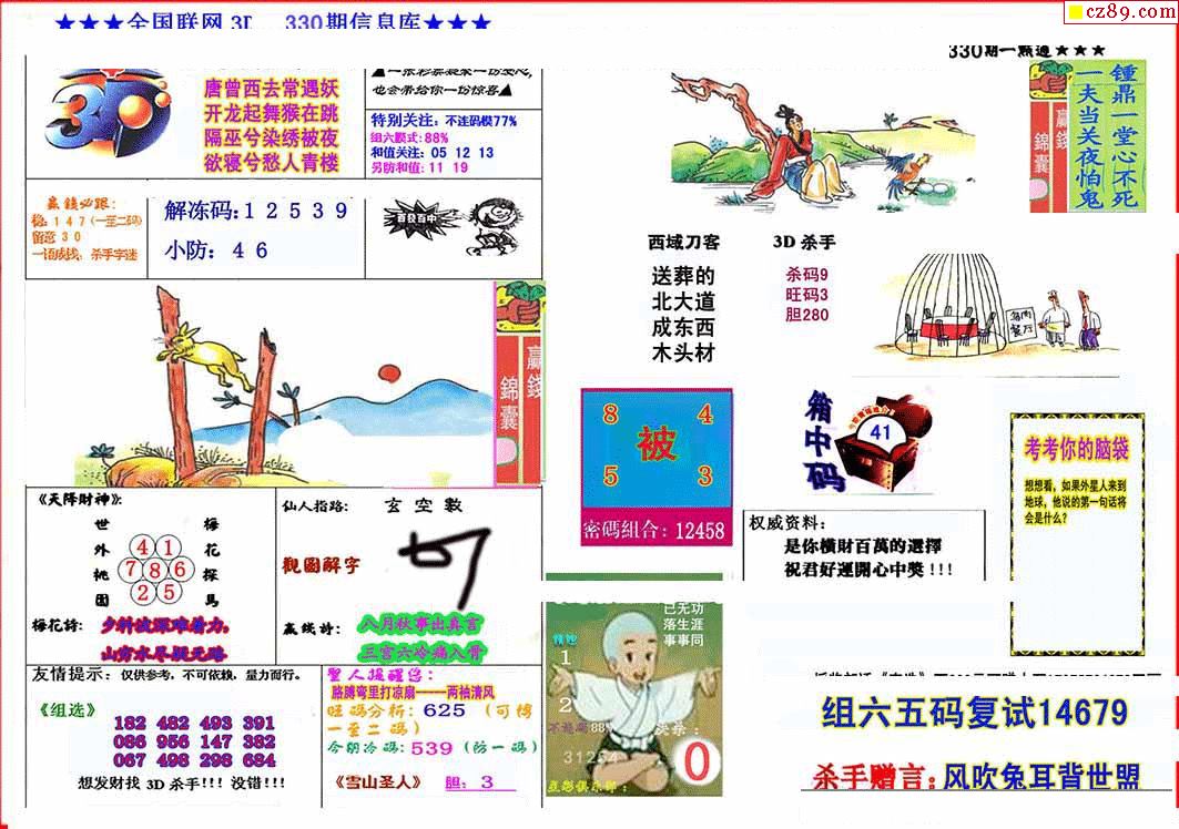 杀手+鑫马快报+字迷汇总25年330期3d图谜