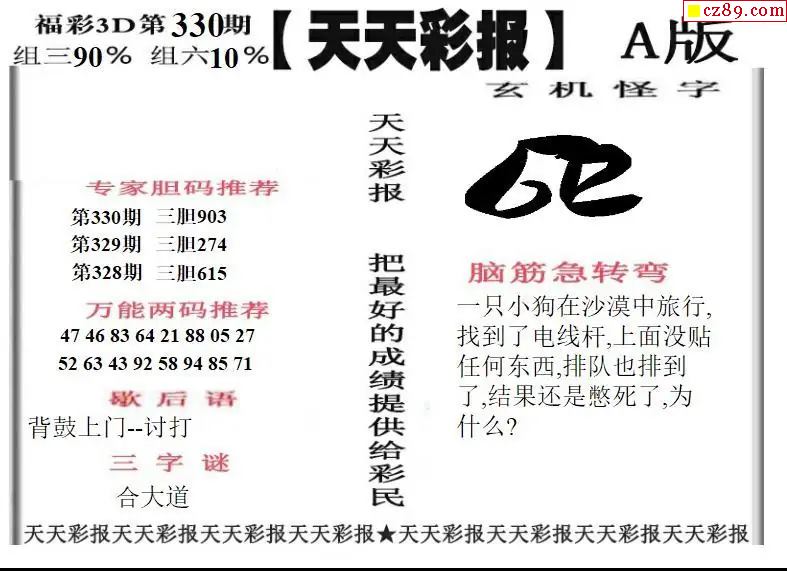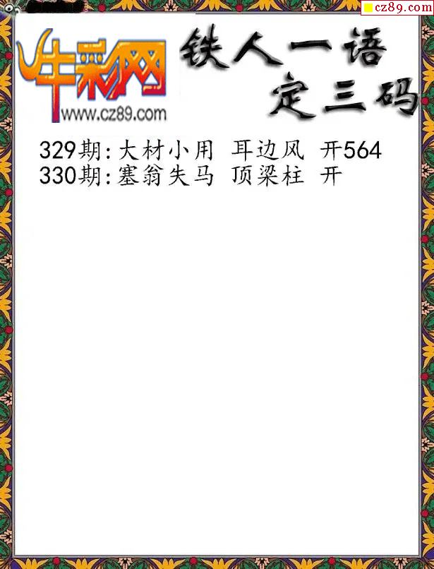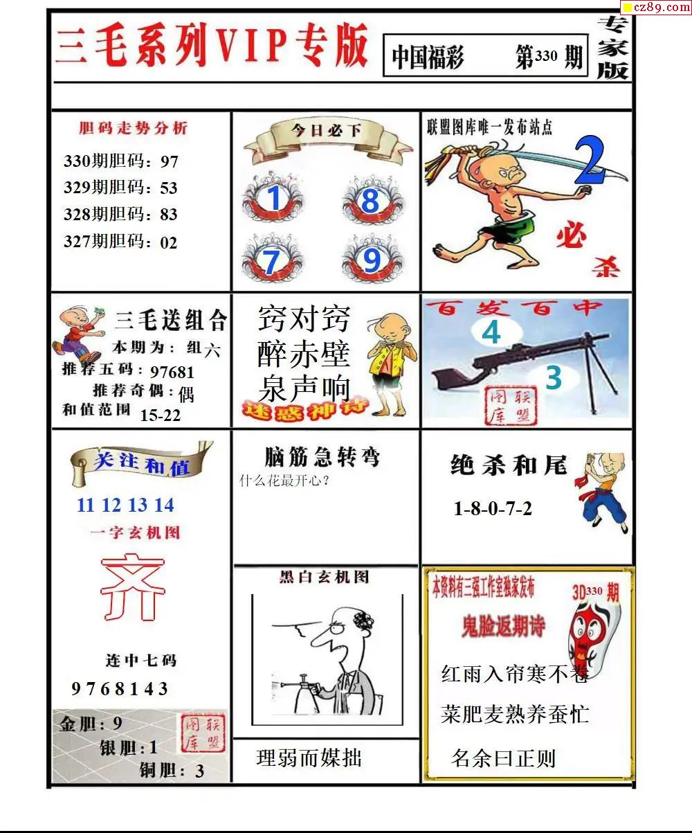 福彩3D2025330期 祁连牧哥百财纳福胆码图谜推荐